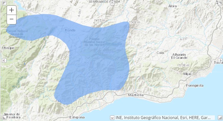 The coat of arms of Yunquera shows the Pinsapo, Abies pinsapo – Spanish fir, a green conifer which only appears in the wild in a small area of Southern Spain and Northern Morocco. The distribution area of the Pinsapo in Spain extends south and west of Yunquera. It is divided into three sub-occurrences, which are located in the Sierra de Grazalema in the province of Cádiz, as well as in the Sierra de las Nieves near Ronda, Yunquera and Tolox and the Sierra Bermeja near Cañete la Real in the province of Malaga.